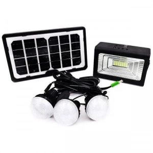 Kit solar cu 3 becuri LED, mini proiector 30 W si power bank pentru incarcarea dispozitivelor mobile 2 in 1.